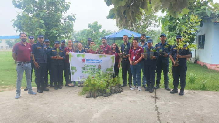 नेपालगञ्ज : ग्रो ग्रीन प्रोजेक्टअन्तर्गत साइन रेसुङ बैकले बृक्षारोपण गरेको छ । बैंकको नेपालगञ्ज शाखाले इलाका प्रहरी कार्यालय जमुनाहाको प्रागंणमा बृक्षारोपण गरेको हो ।