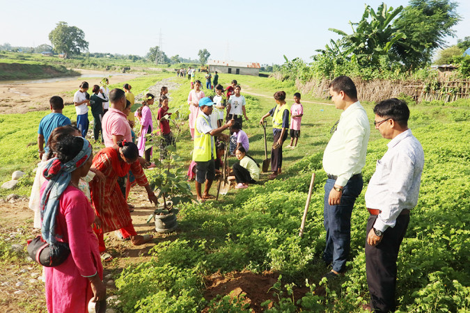 बाँकेको डुडुवा खोलाको किनारामा वृक्षारोपण