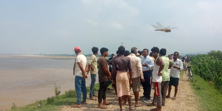 बाँकेस्थित राप्तीनदीको बगरमा हेलिकोप्टर आकस्मिक ल्याण्ड