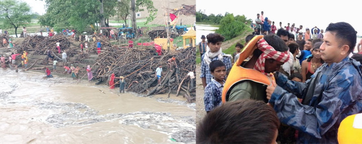 रातभर राप्ती नदीको बाढीमा फसेका चार जनाको उद्धार