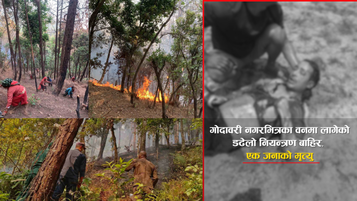 गोदावरी नगरभित्रका वनमा लागेको डढेलो नियन्त्रण बाहिर, एक जनाको मृत्यु